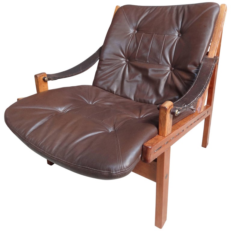 1960 Vintage Torbjorn Afdal Brown Leather Sling Armchair By Bruksbo Norway At 1stdibs