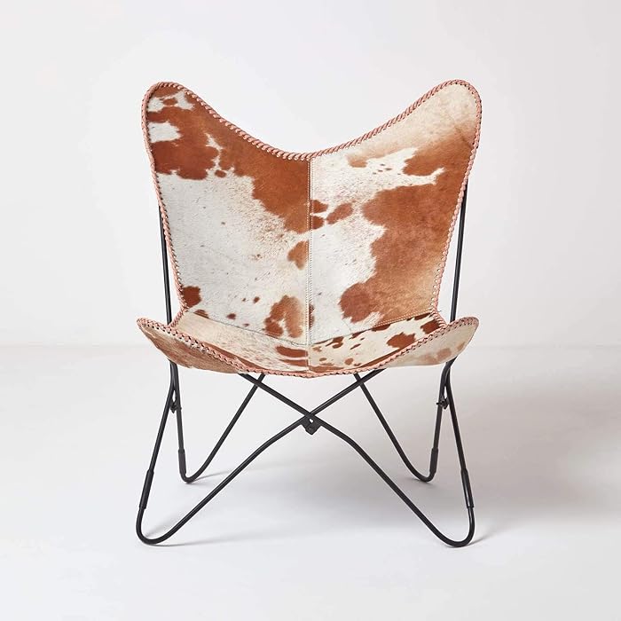 Buy Homescapes Brown And Cream Leather Butterfly Chair Vintage Style Retro Armchair With Black Steel Hairpin Legs 100 Real Leather Cow Hide Modern Bkf Sling Chair Accent Chair Seat 88 Cm Tall