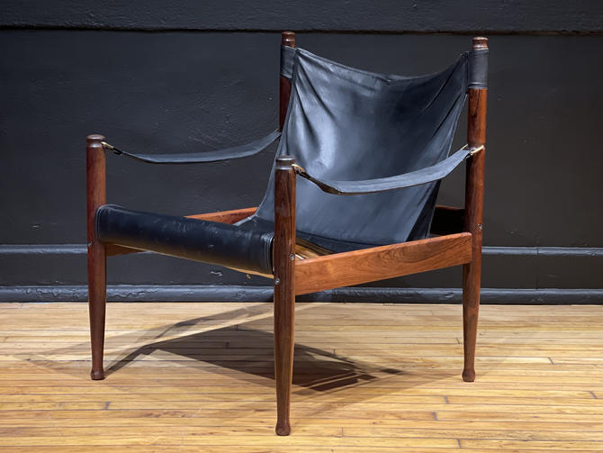 Vintage Danish Rosewood And Black Leather Sling Chair By Eric Midmodmke Milwaukee Wi